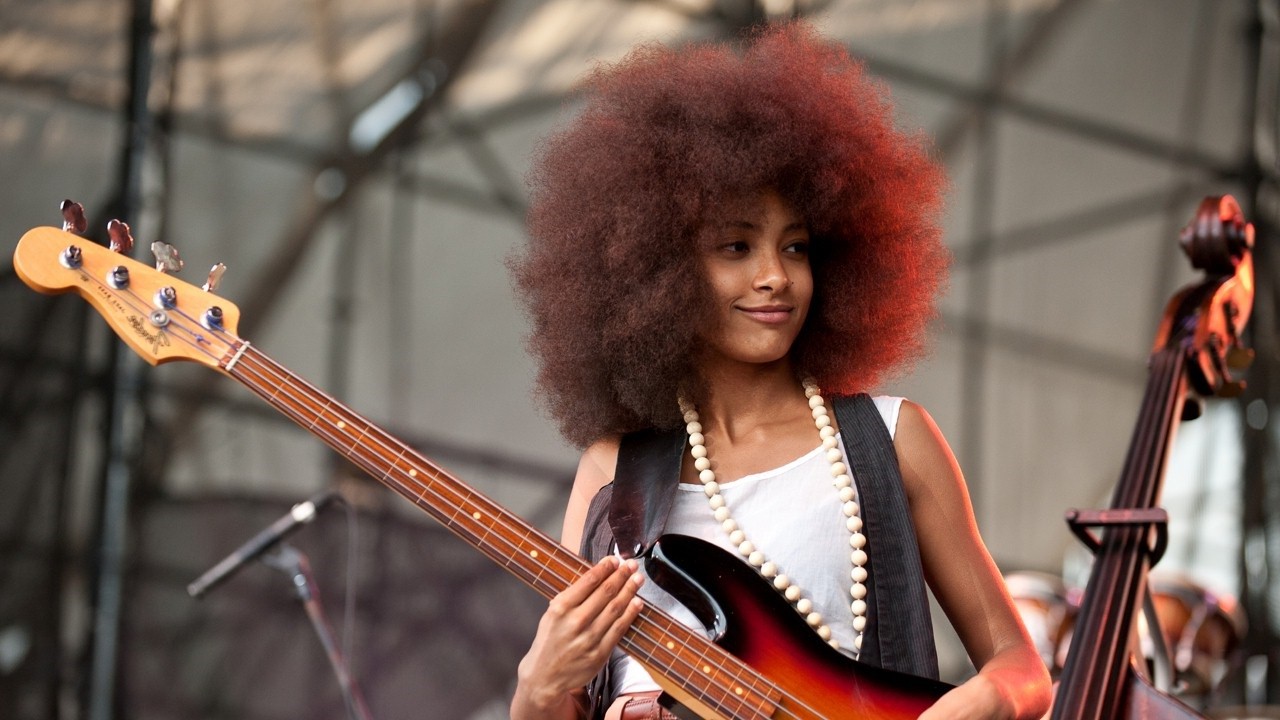 Hailed as a prodigy on the acoustic double bass within months of first touching the instrument as a 15-year-old, Esperanza Spalding has emerged as a fine jazz bassist, but has also distinguished herself playing blues, funk, hip-hop, pop fusion, and Brazilian and Afro-Cuban styles as well. Born in Portland, Oregon in 1984, Spalding was not well served by the public school system and soon dropped out of classes to be home-schooled. Returning to the public school system at 15, she encountered her first acoustic bass (she had already been playing violin for several years) and immediately took to the instrument. Dropping out of school again, Spalding enrolled in classes at Portland State University as a 16-year-old, and earned her B.A. in just three years and was immediately hired as an instructor in the prestigious Berklee College of Music in Boston in the spring of 2005. After touring and playing with a whole host of artists, including Joe Lovano, Patti Austin, Michel Camilo, Charlie Haden, Regina Carter, Pat Metheny, Dave Samuels, and many others, in addition to heading her own jazz trio, Spalding recorded and released Junjo on the Barcelona-based Ayva imprint in 2006, following it with 2008's simply named Esperanza (on Heads Up Records), which scored big with critics and listeners alike. The album topped Billboard's contemporary jazz chart and remained on it for over 70 weeks. In addition, it became the best-selling album by a new jazz artist internationally during 2008. Spalding followed it up with Chamber Music Society in August of 2010. The set was comprised of eight originals and three covers -- including Dimitri Tiomkin and Ned Washington's "Wild Is the Wind" and Antonio Carlos Jobim's "Inutil Paisagem." It was performed by Spalding's quartet with guest vocal appearances from Milton Nascimento and Gretchen Parlato, a small string section, and guitarist Ricardo Vogt. the album reached number one on Billboard's Contemporary Jazz chart, and she received a Grammy in 2011 for Best New Artist. Spalding recorded a companion album to Chamber Music Society throughout 2011. Entitled Radio Music Society, this set includes her regular band -- drummer Terry Lynne Carrington and pianist Leo Genovese -- with help from longtime collaborator Joe Lovano on saxophone and numerous guests: drummers Jack DeJohnette and Billy Hart, guitarists Jef Lee Johnson and Lionel Loueke, hip-hop producer and DJ Q-Tip, and a slew of vocalists, Parlato and Lalah Hathaway among them. It was released in the early spring of 2012.