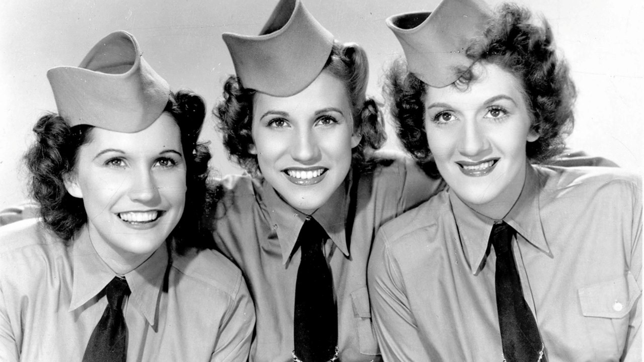 They started their career as imitators of an earlier successful singing group, the Boswell Sisters. After singing with various dance bands and touring on Vaudeville, they first came to national attention with their recordings and radio broadcasts in 1937. Their music entertained Allied troops worldwide during World War II, sold war bonds, appeared in several films (including a few Abbott and Costello features), and performed for soldiers serving overseas. Their first film with Abbott and Costello, the pre-war comedy Buck Privates, introduced their best-known recording, “Boogie Woogie Bugle Boy” which would win Best Song at the Academy Awards.